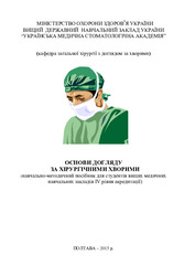 [Uk] Шумейко І.А., Лігоненко О.В., Чорна І.О. та інш. Актуальні питання догляду за хірургічними хворими до та після операцій на різних ділянках тіла, а також догляд за хворими у відділенні хірургічної інфекції. Даний посібник може бути рекомендований студентам 2 та 3 курсу медичних вузів та медичним сестрам.