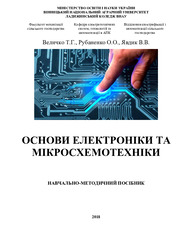 [Uk] Величко Т.Г. Рубаненко О.О. Явдик В.В. МОН України Ладижинський коледж ВНАУ Навчально-методичний посібник містить теоретичний матеріал з навчальних дисциплін «Електроніка і мікросхемотехніка», «Електротехніка і мікропроцесорна техніка», «Електроніка і мікропроцесорна техніка», «Електротехніка і електроніка», що вивчаються студентами різних спеціальностей на факультеті механізації сільського господарства, спрямований на організацію вивчення теоретичного матеріалу необхідного для майбутнього спеціаліста.