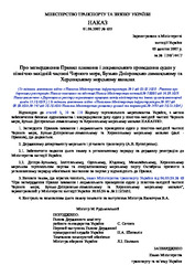 Міністерство транспорту та зв'язку УКРАЇНИ. Вимоги Правил поширюються на системи розподілу руху суден у ПЗЧЧМ, РШ, морські канали: БДЛК і ХМК, підхідні канали до всіх портів, терміналів, заводів та інших підприємств ПЗЧЧМ, РШ до кар’єру Рибальче, прилеглі до БДЛК перше та друге коліна каналу акваторії МПМ, Спаський канал, райони (смуги) за бровками цих каналів і акваторії портів регіону, а також на всіх суб’єктів підприємницької діяльності незалежно від форми власності та відомчого підпорядкування.