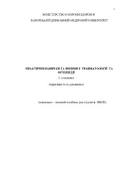 [Uk] Головаха М.Л., Івченко Д.В., Кудієвський А.В. Навчально–наочний посібник для студентів ВМНЗ. Обстеження хворих з ушкодженнями та захворюваннями системи опори та руху. Тимчасова зупинка зовнішньої кровотечі. Анестезія місця перелому діафіза довгої кістки. Транспортна іммобілізація стандартними шинами, лікувальна іммобілізація нескладними гіпсовими пов'язками. Оцінка стану кінцівки в гіпсовій пов'язці, техніка зняття гіпсової пов'язки.